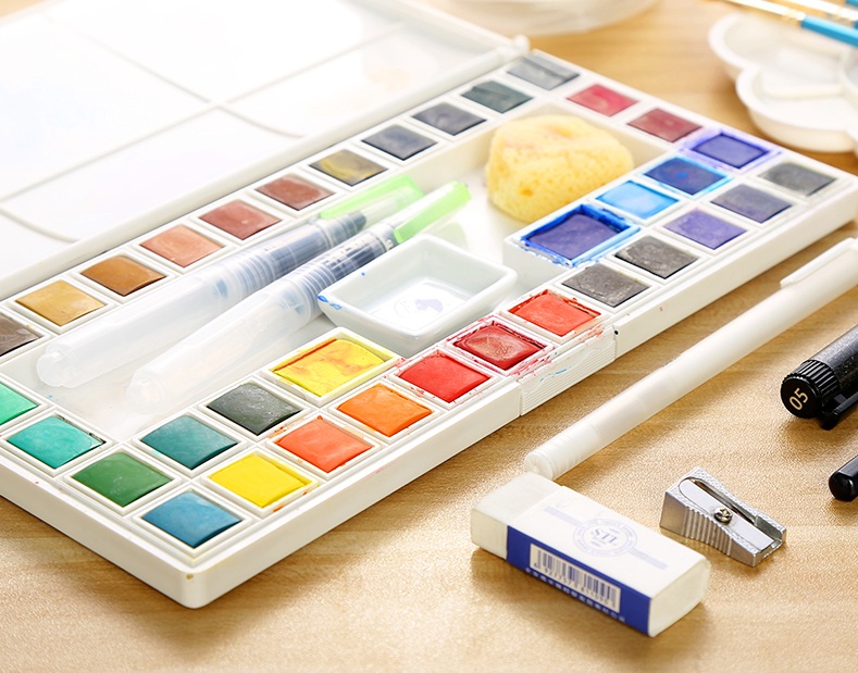 Màu Marie's Hộp nén được thiết kế rất tiện lợi và gọn nhẹ . 1 Hộp sẽ vừa để đựng màu , vừa kiêm luôn pallete pha màu , ở phần giữa hộp sẽ có khoảng trống để người dùng có thể để những vật dụng khác cho tiện đem theo như cọ , bút , tẩy ...