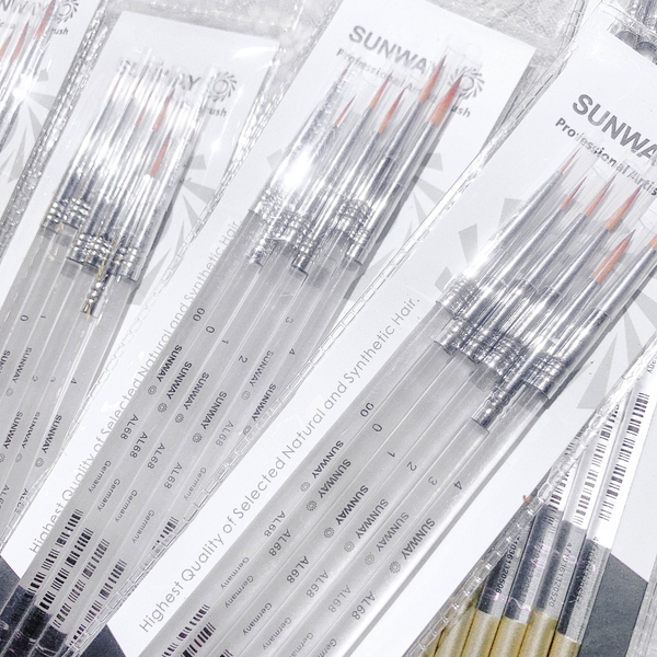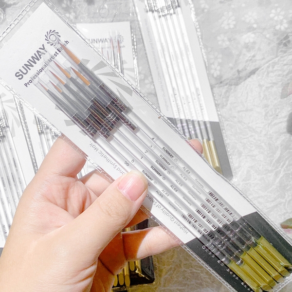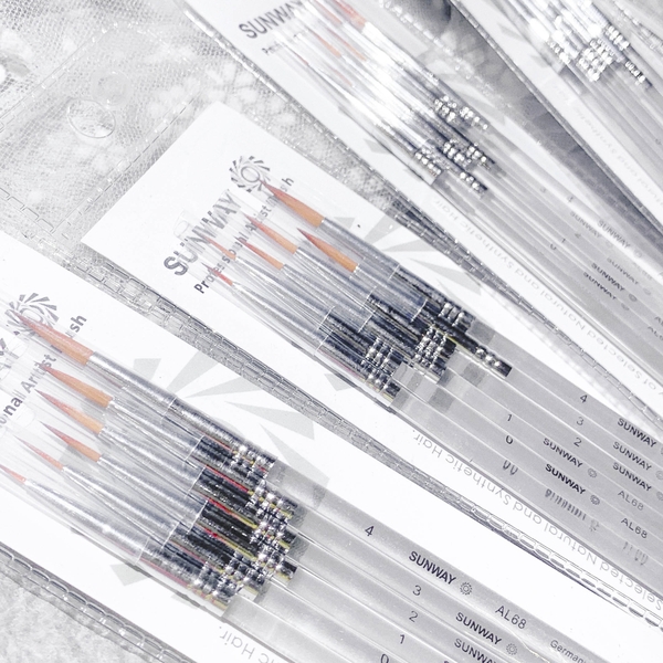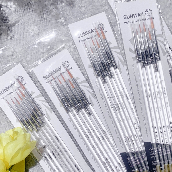 Bộ Cọ Vẽ đầu Tròn Cao Cấp Sunway - Cọ Tỉa Nét Nhỏ Lông Nhân Tạo Cán Trong